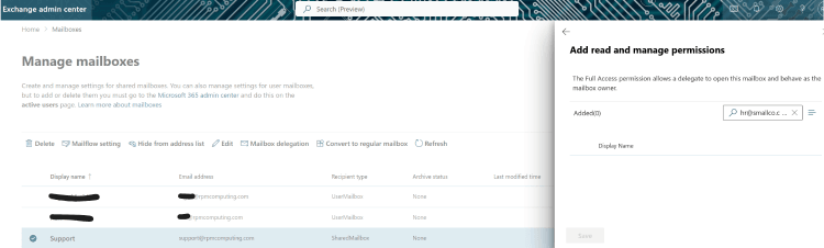 Microsoft 365: Shared Mailbox delegation